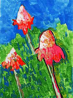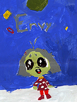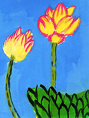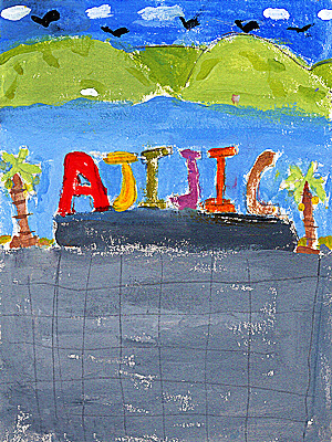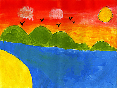 You cannot compare children's art to art produced by adult professional artists. Unlike other children's art programs with art from "kids" aged 18 to 28, our children average between 9 and 11 years of age. Our art students all have great potential because they have imagination, creativity, and passion. However, they have only just started on their journey towards learning the technical skills needed to fully realise their ideas. That said, their art is charming, and, often, surprising. When you consider children's art in the context of the age of each young artist, you will be amazed at the quality of the vision and composition from someone so young.